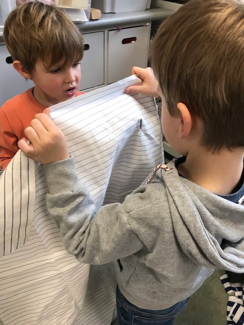 De kleuters krijgen eerst de tijd om de aanwezige materialen nader te bekijken.