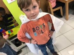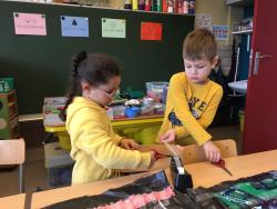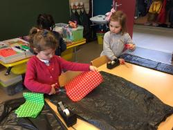 De kleuters mogen hun creaties aan elkaar tonen en vertellen hoe ze tewerk zijn gegaan. Dit kan ook de kleuters prikkelen die nog geen pak hebben gemaakt.