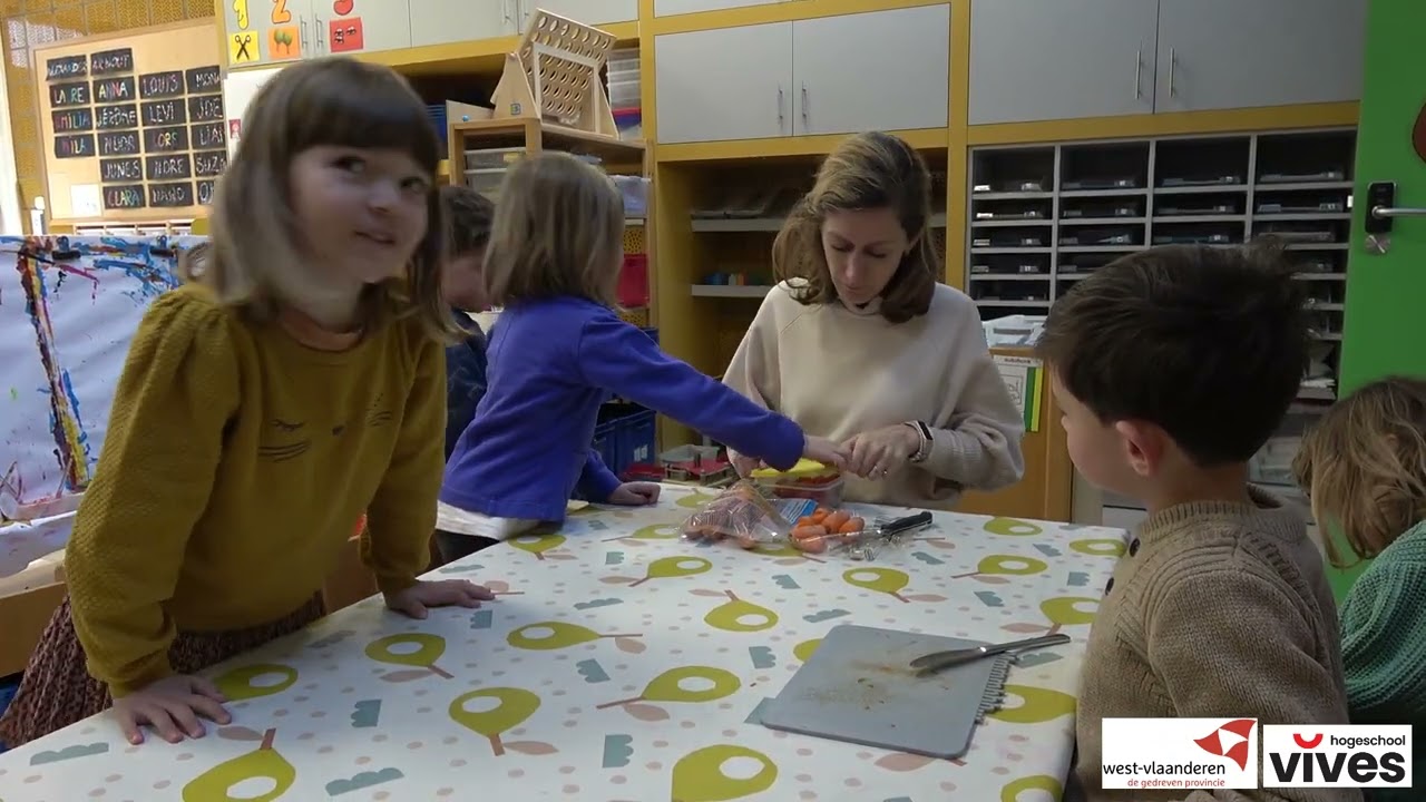 We starten met de spruitjes, broccoliroosjes, snoeptomaatjes (hoeveel stukken hebben we nodig om 100 gram te bekomen). Daarna wegen we de wortels, hier is nl. de kans klein dat een exact aantal wortels het nodige gewicht zal hebben. Kleuters zullen dus op zoek moeten naar een oplossing. Hoe komen we toch aan 100 gram wortelen?